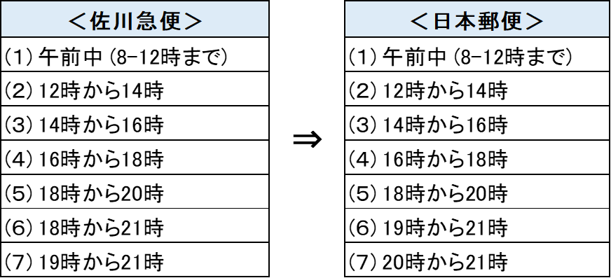 それに伴い、時間指定のお時間帯や、時間指定が出来ない地域が一部変更となります。