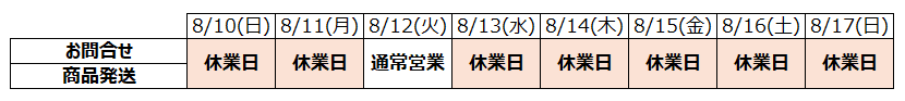 誠に勝手ながら、弊社では下記の期間を夏季休業とさせていただきます。