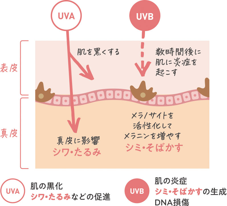 2種類の紫外線が日焼けや老化、皮膚疾患の原因に